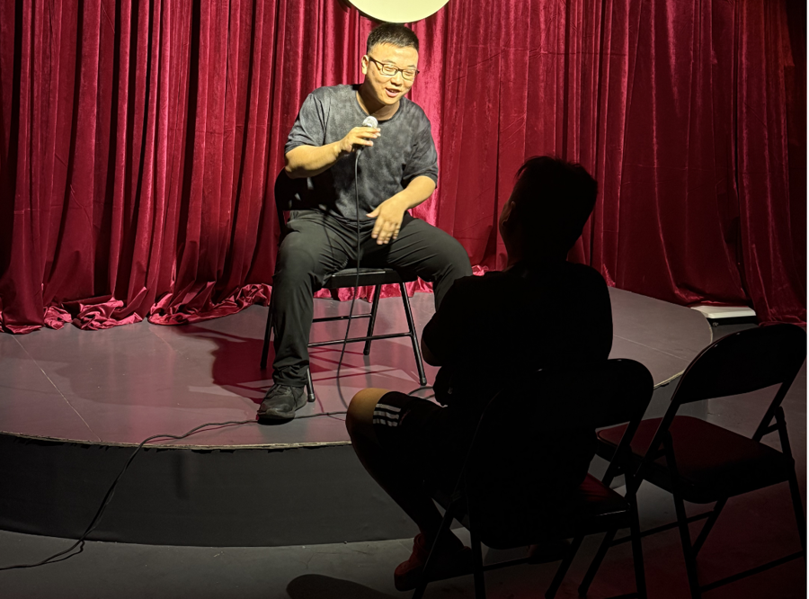 更难的是,他还经历过一两个观众的场子。“有一次演出,周四晚上10点到11点半的场子,根本没观众。老板人好,知道我在上大学,跑一趟开放麦不容易,就安排其他演员轮流陪我演。我一个人对着一个观众讲。那种时候,最考验心理素质。观众看手机,你就得停下来等;他打电话,你也得等;他听不懂,你还得再讲一遍,甚至可以让他随时打断我。”